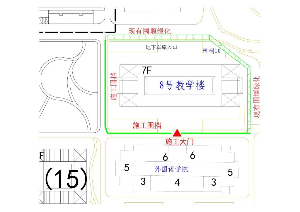 圖2 音樂學院教學樓圍擋范圍示意圖
