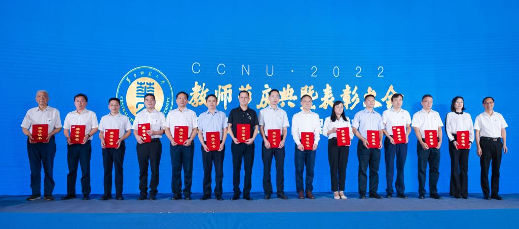 大會(huì)表彰了76名從教30年的教職員工、34名從教40年的教職員工、120名榮休教職員工,新入職教職員工代表上臺(tái)為榮休教職員工獻(xiàn)花,榮休教職員工為新入職教職員工代表贈(zèng)送校徽。大會(huì)還表彰了2021年度“校長(zhǎng)獎(jiǎng)”獲得者、楚天園丁獎(jiǎng)獲獎(jiǎng)?wù)摺⒑笔∥逡粍趧?dòng)獎(jiǎng)?wù)芦@獎(jiǎng)?wù)摺⑶G楚好老師獲獎(jiǎng)?wù)摺⒌诙萌珖?guó)高校教師教學(xué)創(chuàng)新大賽獲獎(jiǎng)?wù)摺⒑笔〉诎藢们嗄杲處熃虒W(xué)競(jìng)賽獲獎(jiǎng)?wù)摺⒌诹鶎萌珖?guó)教育科學(xué)研究成果獲獎(jiǎng)?wù)摺⒒粲|青年科學(xué)獎(jiǎng)獲獎(jiǎng)?wù)摺?/p>