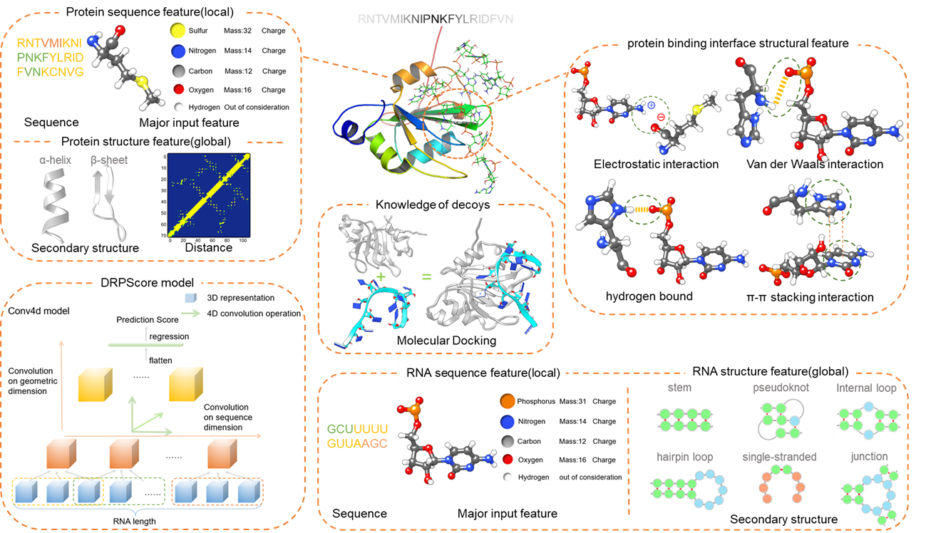 圖1. DRPScore模型訓練中學習的RNA-蛋白質復合物特征與4DCNN深度學習模型