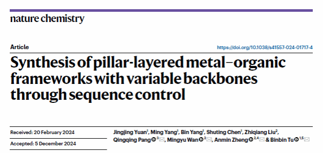 華大在線訊(通訊員 周漢鳴)近日,化學(xué)學(xué)院涂斌斌副教授團(tuán)隊(duì)在金屬有機(jī)框架序列調(diào)控方面取得了重要進(jìn)展。該研究成果在國(guó)際化學(xué)領(lǐng)域權(quán)威期刊《自然化學(xué)》(Nature Chemistry)發(fā)表,題為“Synthesis of backbone variable pillar-layered metal–organic frameworks through sequence control”(Nat. Chem. 2025, 17, 421-428)。博士研究生元靜靜為論文第一作者,通訊作者為武漢科技大學(xué)龐青青講師、萬(wàn)明宇特任教授、鄭安民教授和我校涂斌斌副教授(最后通訊作者),第一完成單位為華中師范大學(xué)。